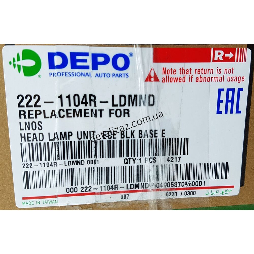 Фара в сборе передняя правая Сенс Ланос. DEPO 222-1104RLDM