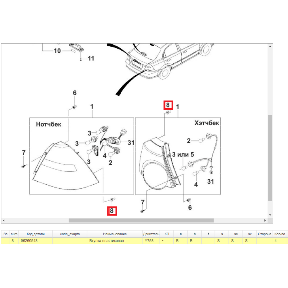Фиксатор, клипса, втулка пластиковая заднего фонаря