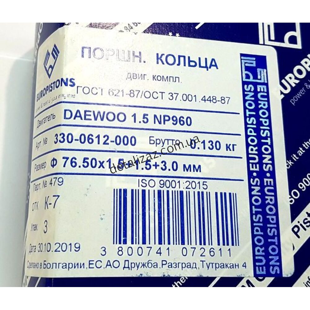 Кольца поршневые Стандарт Ланос 1.5 DR 330-0612-000