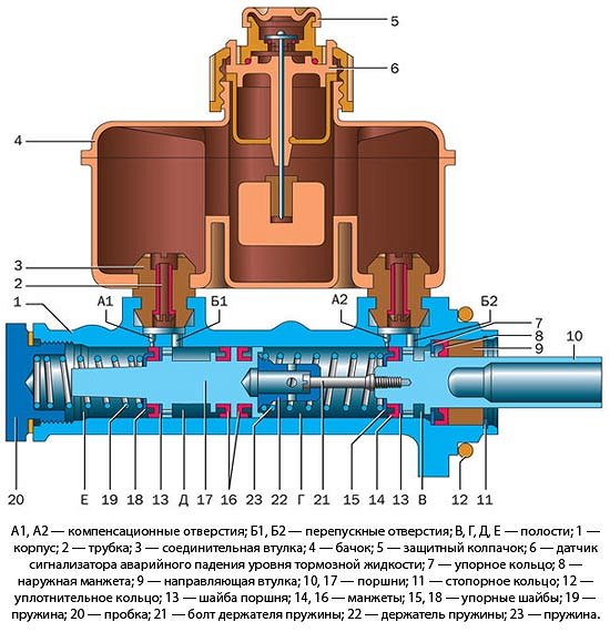 Благодаря соединительным втулкам, выполненным из резины, на цилиндр крепится специальный бачок. Внутри бачок разделен на три отделения. Это необходимо для подпитки каждой отдельно взятой камеры. Для механики отсек также подпитывает и основной цилиндр привода сцепления.