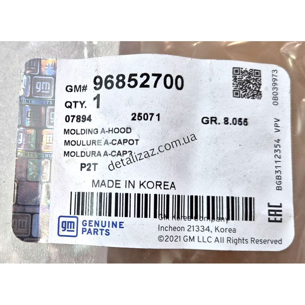 Накладка декоративная на капот "хром" Aвeo GM 96852700