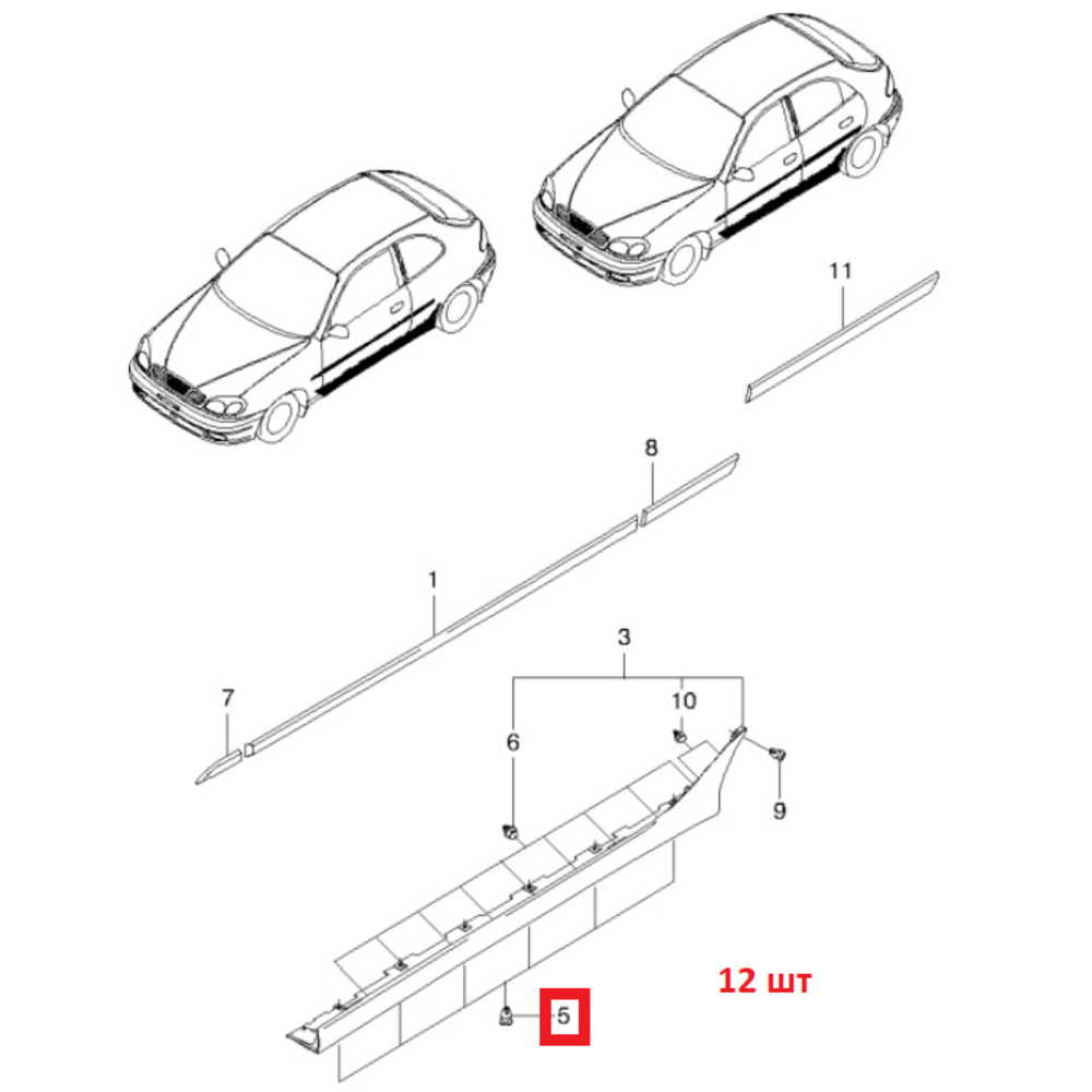 Пистон, клипса крепления переднего и заднего бампера. Цена указана за 10 штук. На Ланос на передний бампер идет 9 штук, на задний 4 штуки