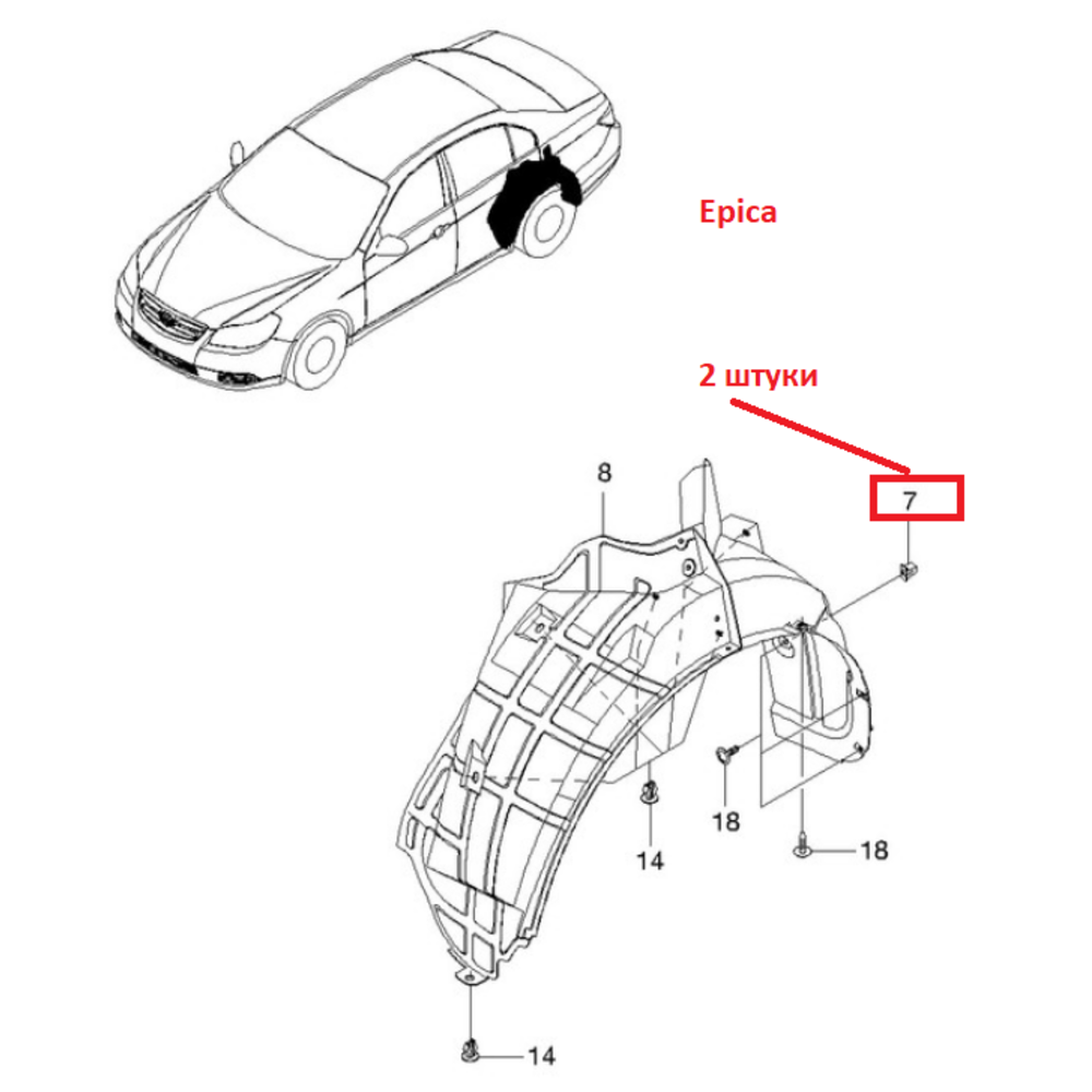 Пистон крепления подкрыльника, бампера, брызговика. Украина 94515246