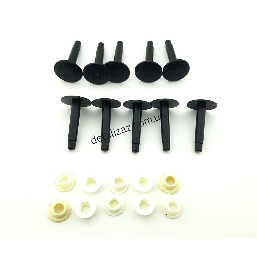 Пистон (клипса) крепления порогов пола - правого, левого; накладки тунеля; оббивок передних стоек в ногах - левая, правая; пистоны идут со втулками в кузов. Цена указана за 10 штук. Могут комплектоваться как белой так и черной втулками