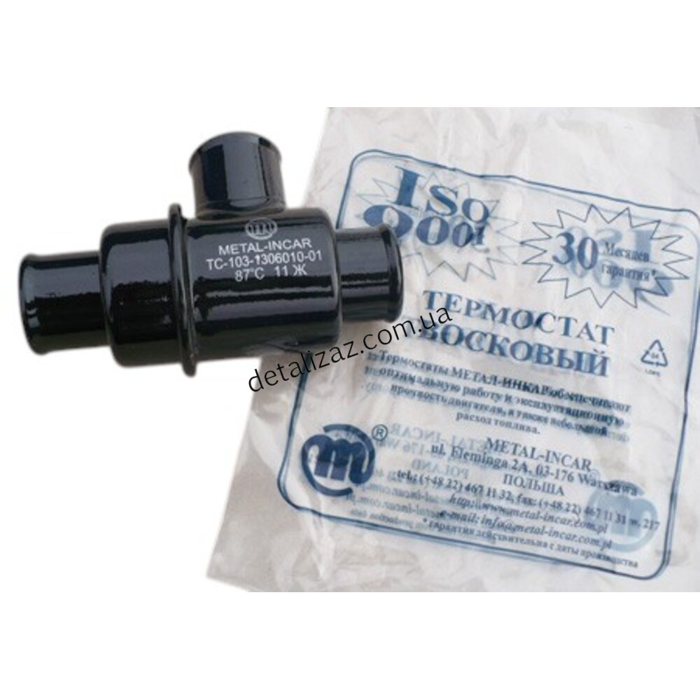 Термостат ( температура начала открытия основного клапана 87 градусов ). Корпус термостата - металлический.