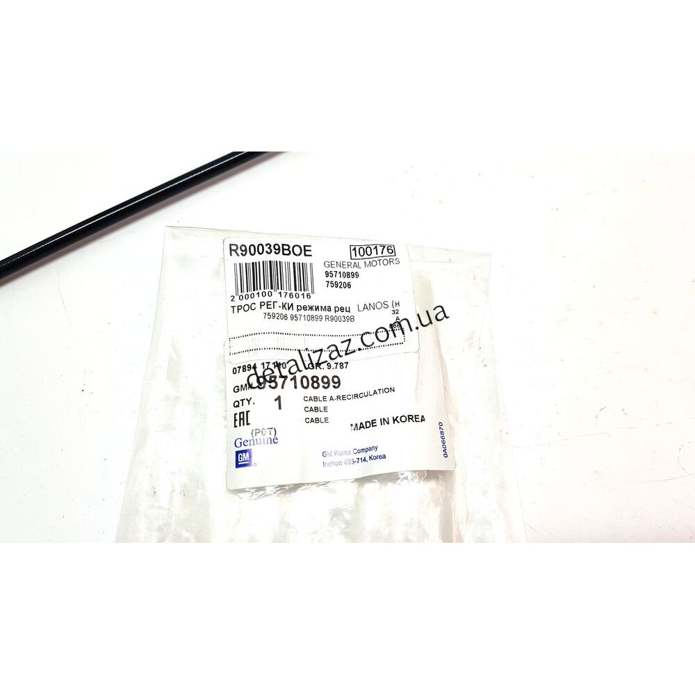 Трос печки рециркуляции воздуха Сенс Ланос GM 95710899, 759206