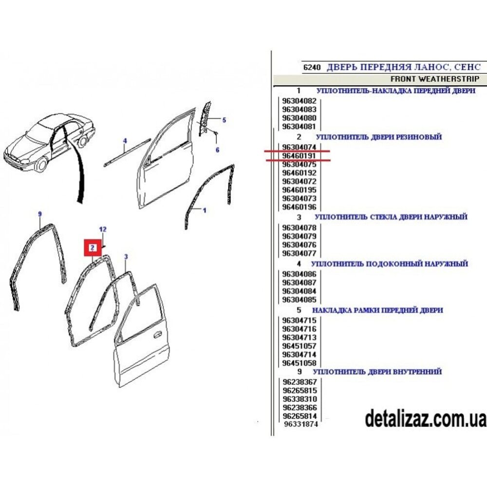 Уплотнитель передней двери левый Сенс Ланос. GM 96460191