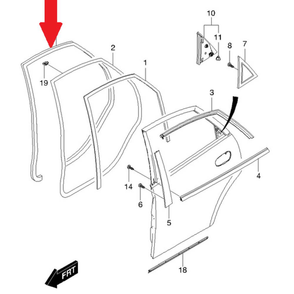 Уплотнитель проёма задней правой двери, не сплошной, заходит под порог