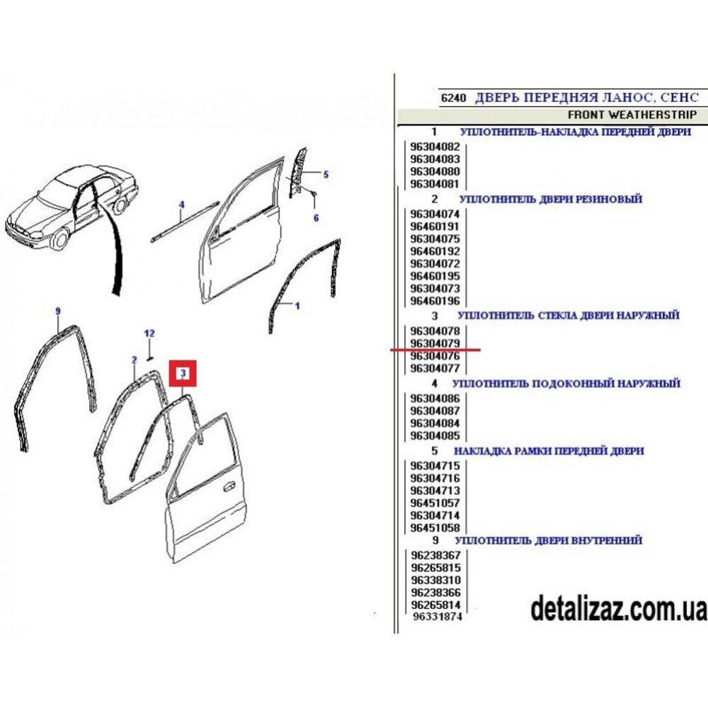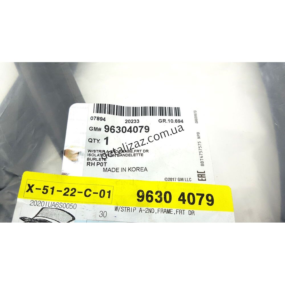 Уплотнитель передней правой двери верхний Ланос GM 96304079