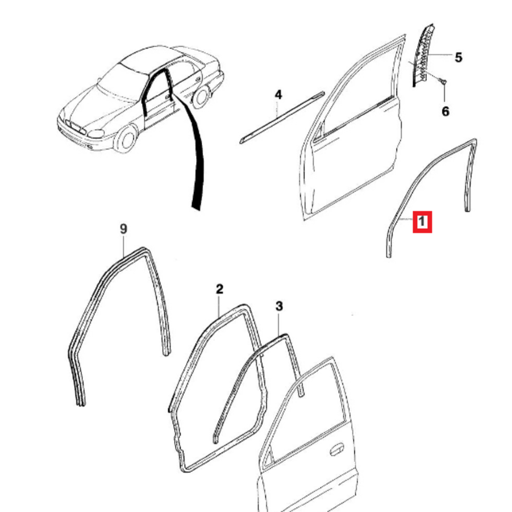 Уплотнитель стекла передней двери левый Сенс Ланос GM 96304082