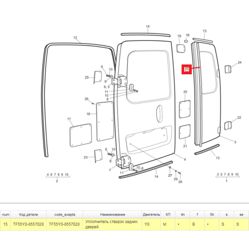 Уплотнитель задних дверей, устанавливается на правую дверь вертикально между дверями