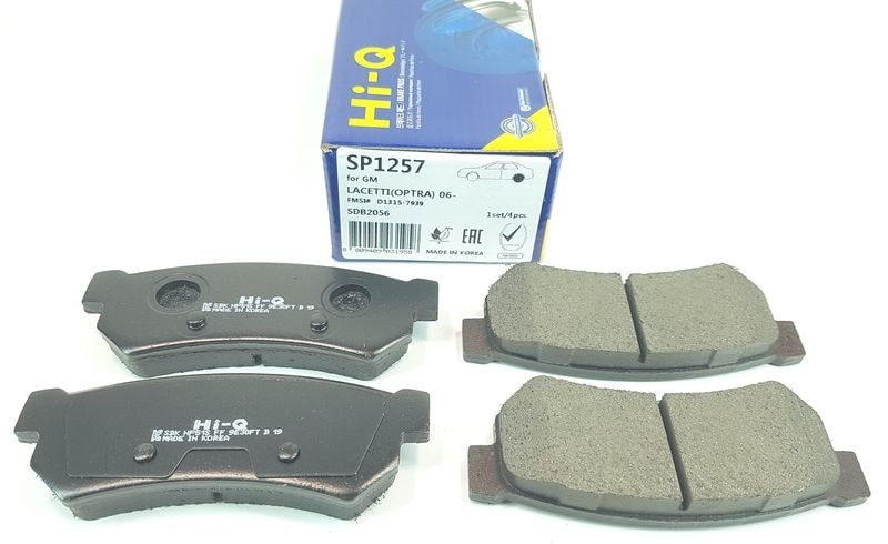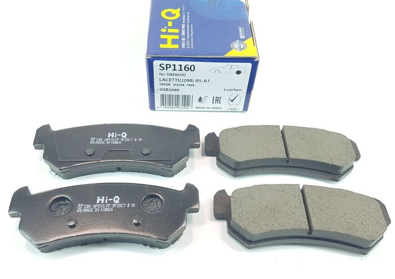 Колодки тормозные передние, цена за 1 комплект - 4 штуки Подходит на автомобиль:  Лачетти ( Lacetti ) Производитель:  НI-Q (Sangsin Brake) Корея Номер:  SP1159, 9640..