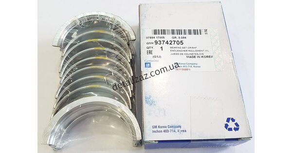 Вкладыши коренные стандартный размер - 60.6 мм Подходит на автомобили: Ланос 1.5 - 1.6, Авео-все модели, Лачетти 1.6 и 1.8LDA Производитель: GM Номер: 93742705 ..