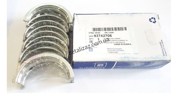 Вкладыши коренные 1й ремонтный размер 60.6 мм +0.25 Подходят на автомобили: Ланос 1.5 - 1.6, ЗАЗ-Вида, Авео, Лачетти 1.6 и 1,8LDA, Круз LXT 1.6 Бренд: GM оригинал Номер: 93742706 ..