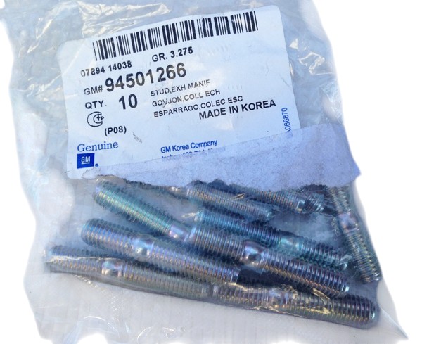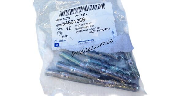 Болт-шпилька выпускного коллектора. Цена за 1шт Подходит на автомобиль: Lanos 1.5 ( Ланос 1.5 ), Nubira, Авео 1.5. Производитель: GM Номера: 94501266, 09108, 10003 ..
