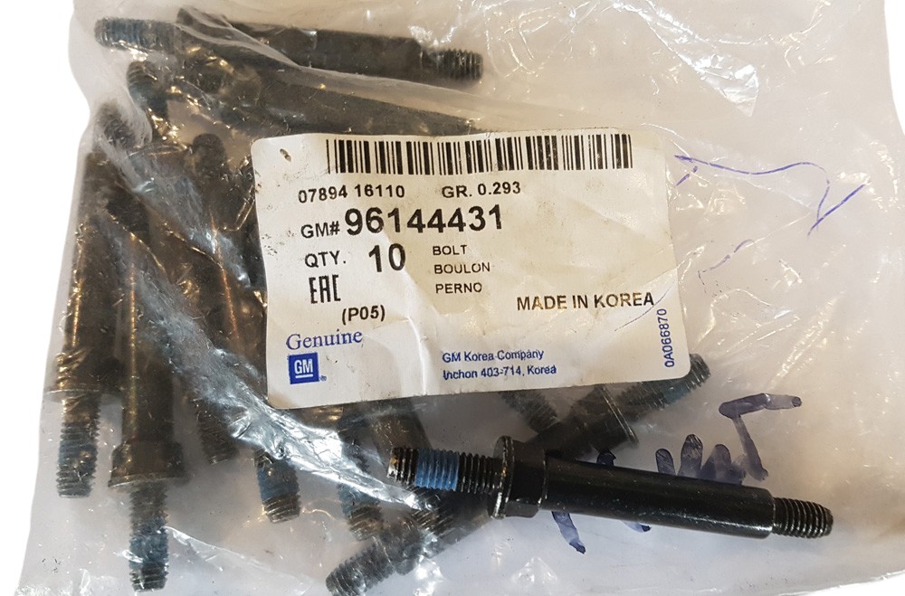 Болт крепления головки блока цилиндров ГБЦ. Цена за 1 штуку. Подходит на автомобиль: Ланос 1.5, Авео 1.5 Производитель GM оригинал Номер по каталогу: 94501001 ..