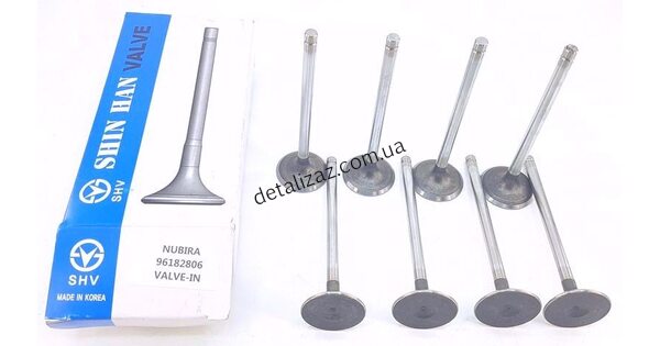 Клапан впускной, (клапана впускные). Цена за 1 штуку Подходит на автомобиль: Lanos 1.6 (Ланос 1.6) Производитель: ShinHan Корея Номер: 96182806 ..