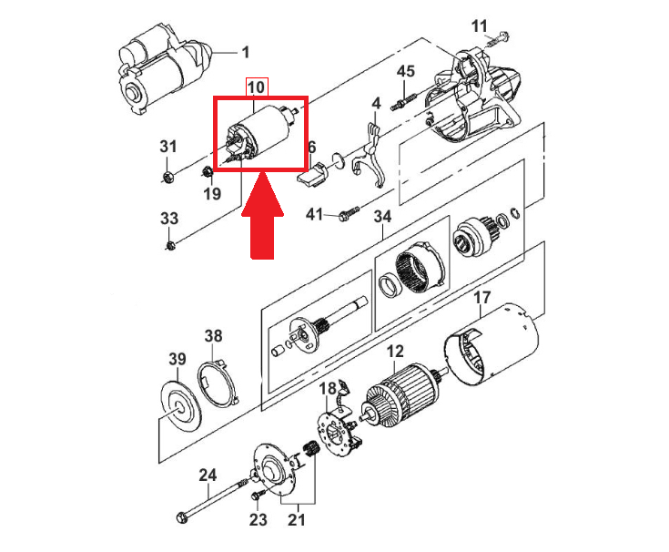 Щеткодержатель стартера 0.8 KW, щетки стартера Материал: пластик Подходит на автомобиль: Ланос ( Lanos ) Производитель: Корея Номер: 93740997, 10475107 ..