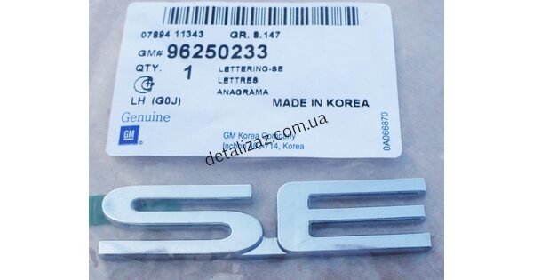 Эмблема надпись "SE" Подходит на Сенс, Ланос Производство: GM оригинал Номер: 96250233, 96604271..