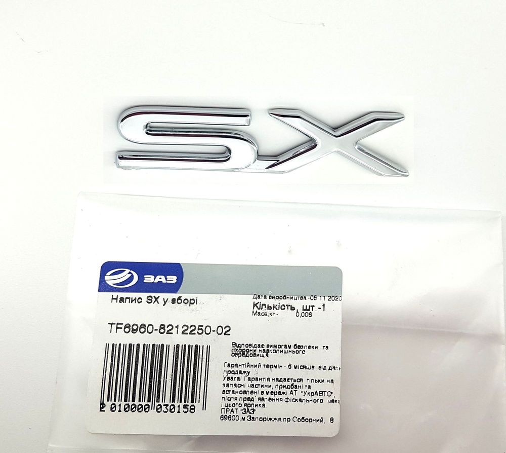 Эмблема надпись "SХ". Материал пластикПодходит на Сенс, Ланос Номер: 96250234, TF6960-8212250-02..