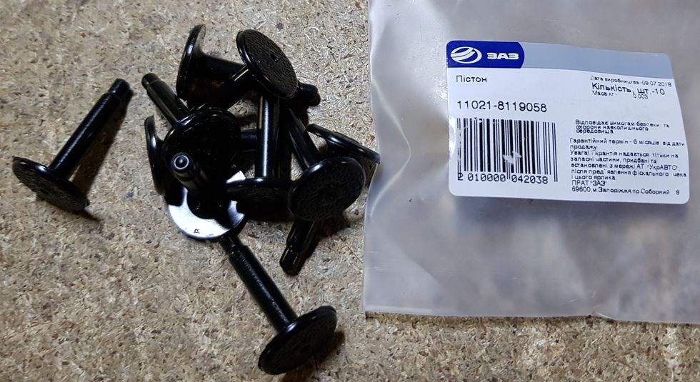 Пистон (клипса) крепления порогов пола - правого, левого; накладки тунеля; оббивок передних стоек в ногах - левая, правая; пистоны идут со втулками в кузов. Цена указана за 10 ш..