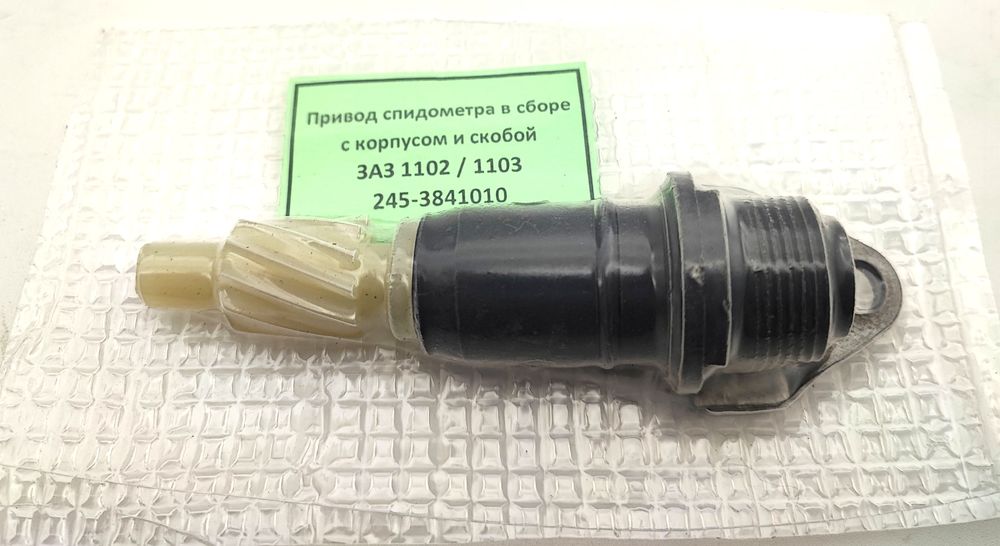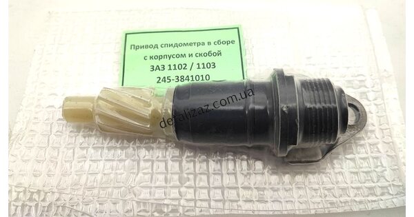 Комплект привода спидометра. В комплект входит: вал-шестреня (ведомая), корпус привода спидометра (держатель) и скоба крепления. Подходит на автомобиль: Таврия 1102, Славута 1103, Пик..